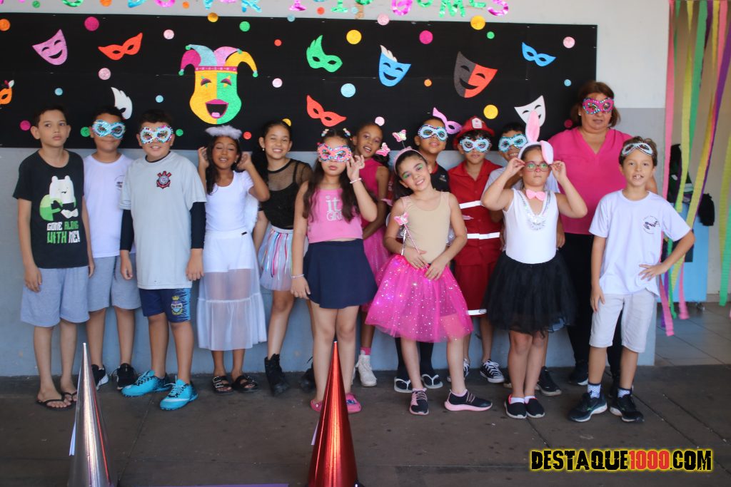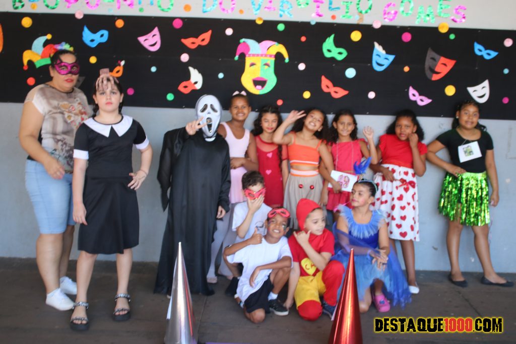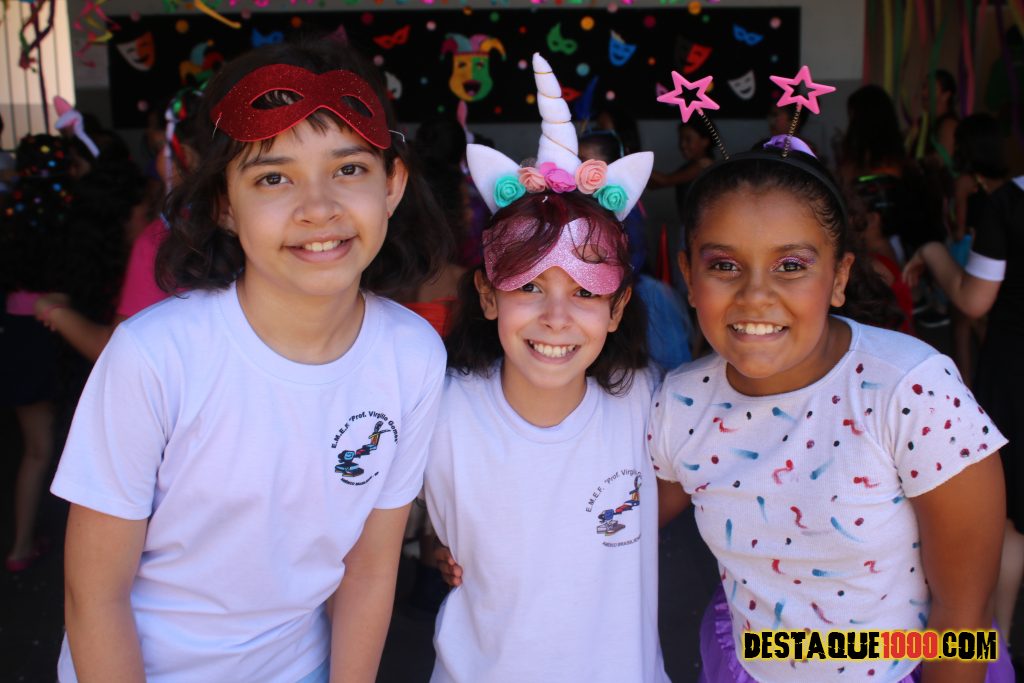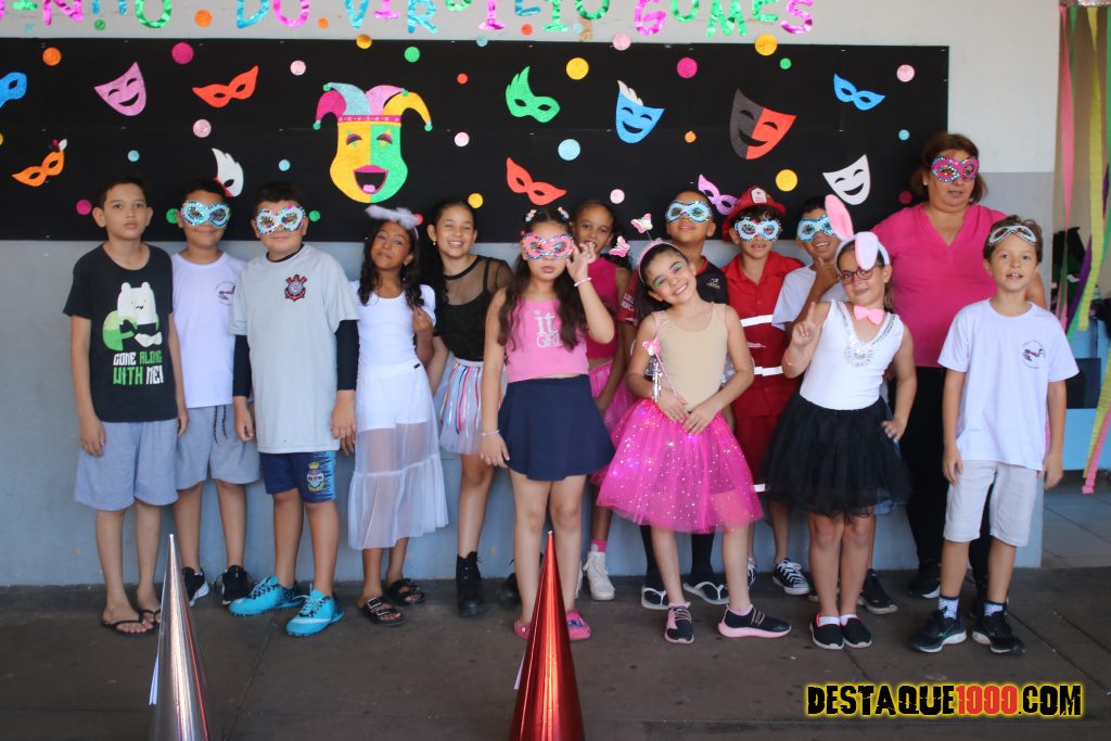 Escola Municipal Virgilio Gomes: alunos se divertem em comemoração ao carnaval