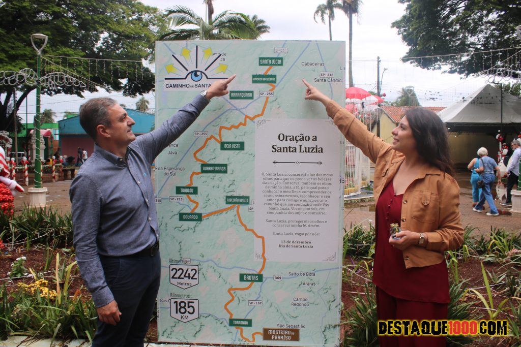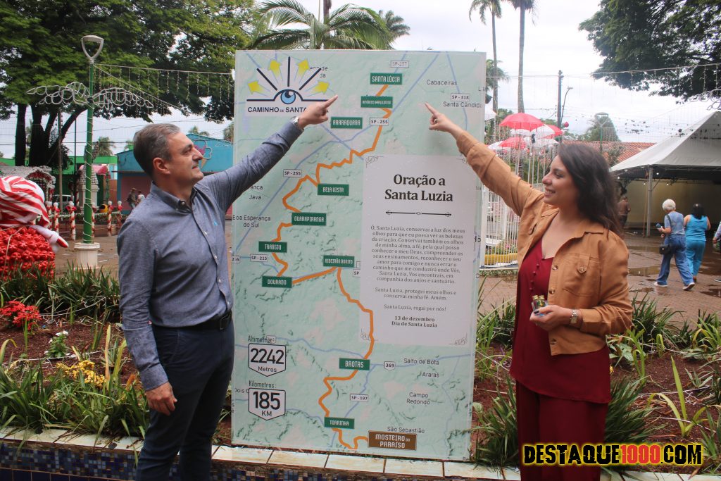 Na manha de sábado dia 13 de dezembro, prefeitos e autoridades municipais e religiosas estiveram em Santa Lúcia assinando o Totem do Caminho da Fé de Santa Luzia. Veja vídeos e reportagens nas redes sociais Destaque1000 e portal.