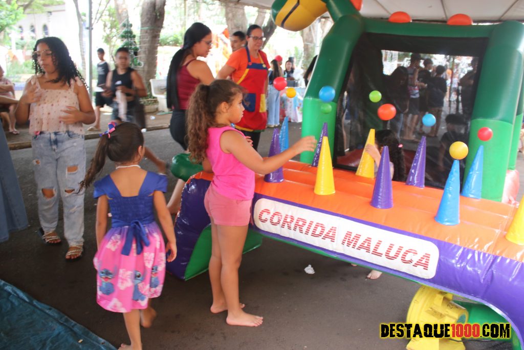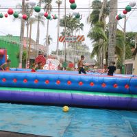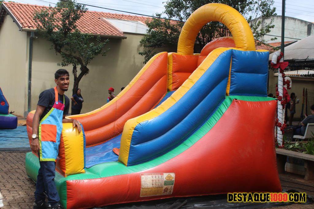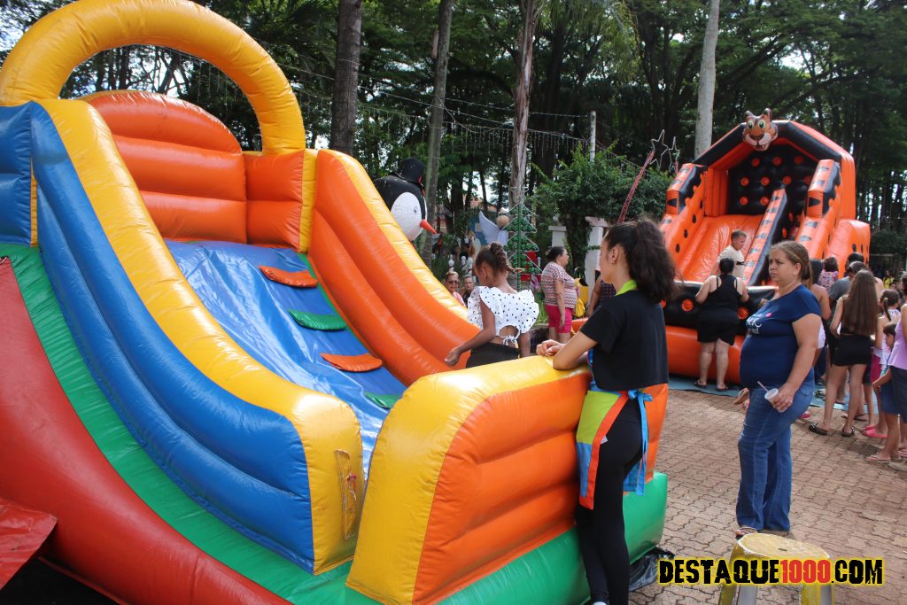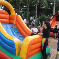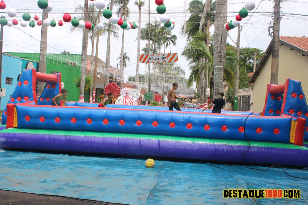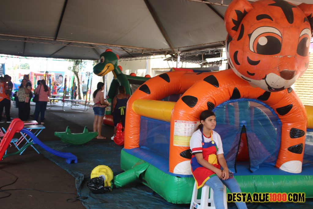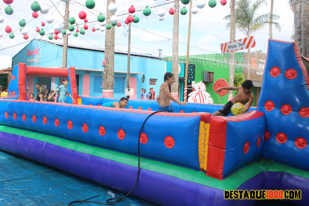 Aniversário da cidade de Santa Lúcia com brinquedos infláveis e muita diversão na praça Matriz