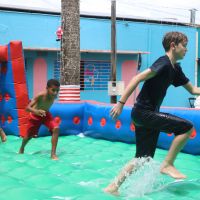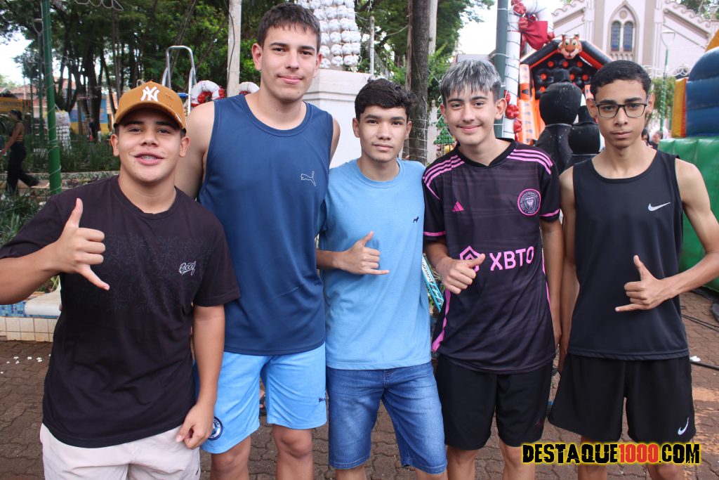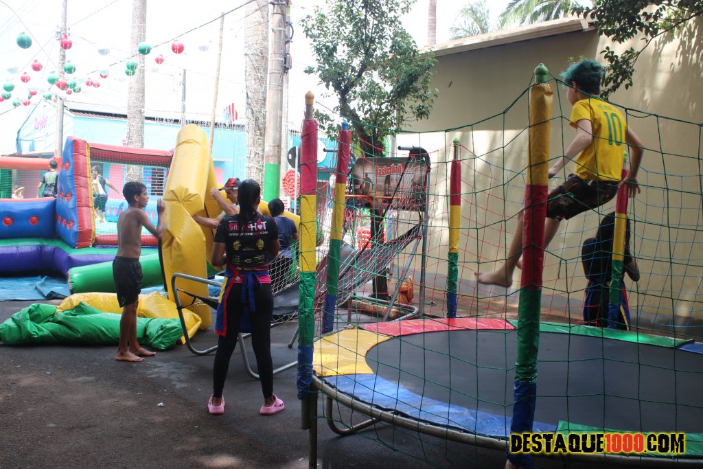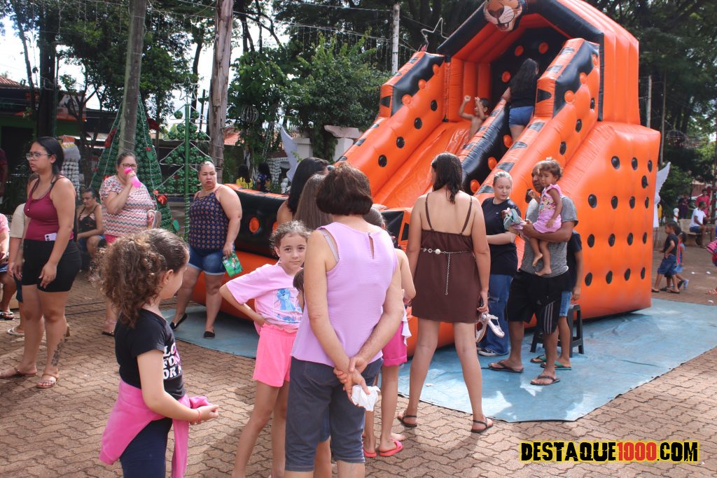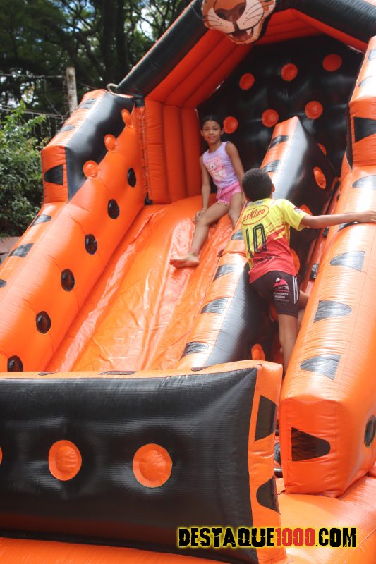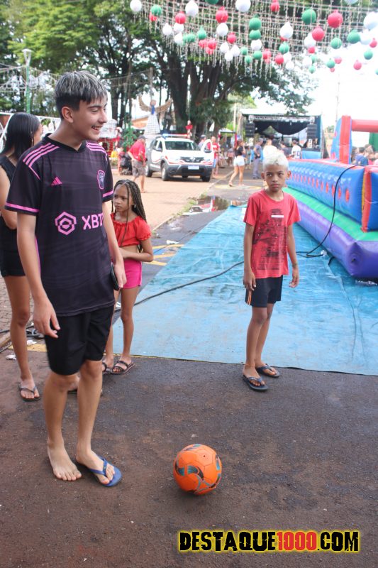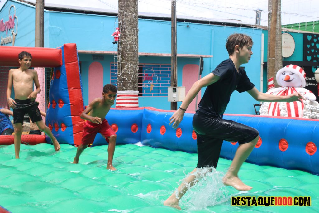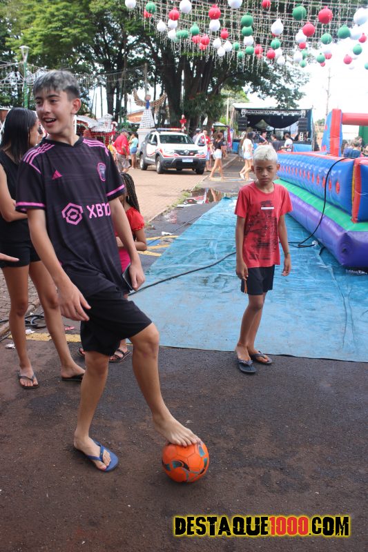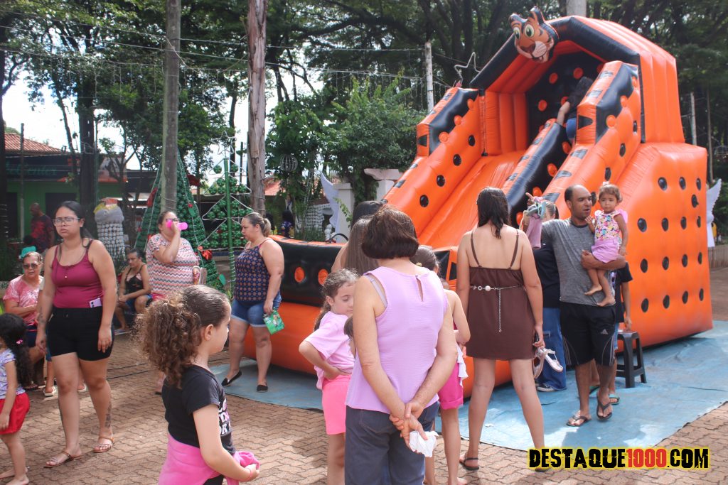 Aniversário da cidade de Santa Lúcia com brinquedos infláveis e muita diversão na praça Matriz