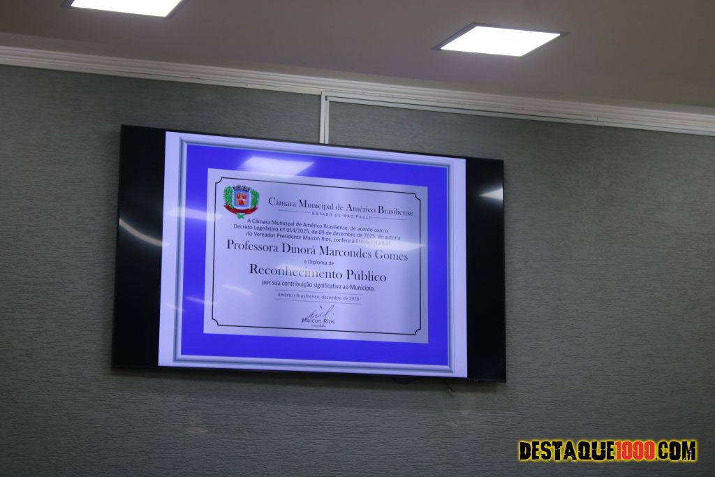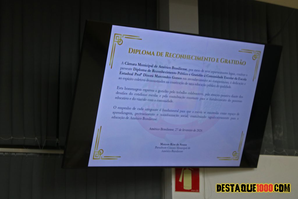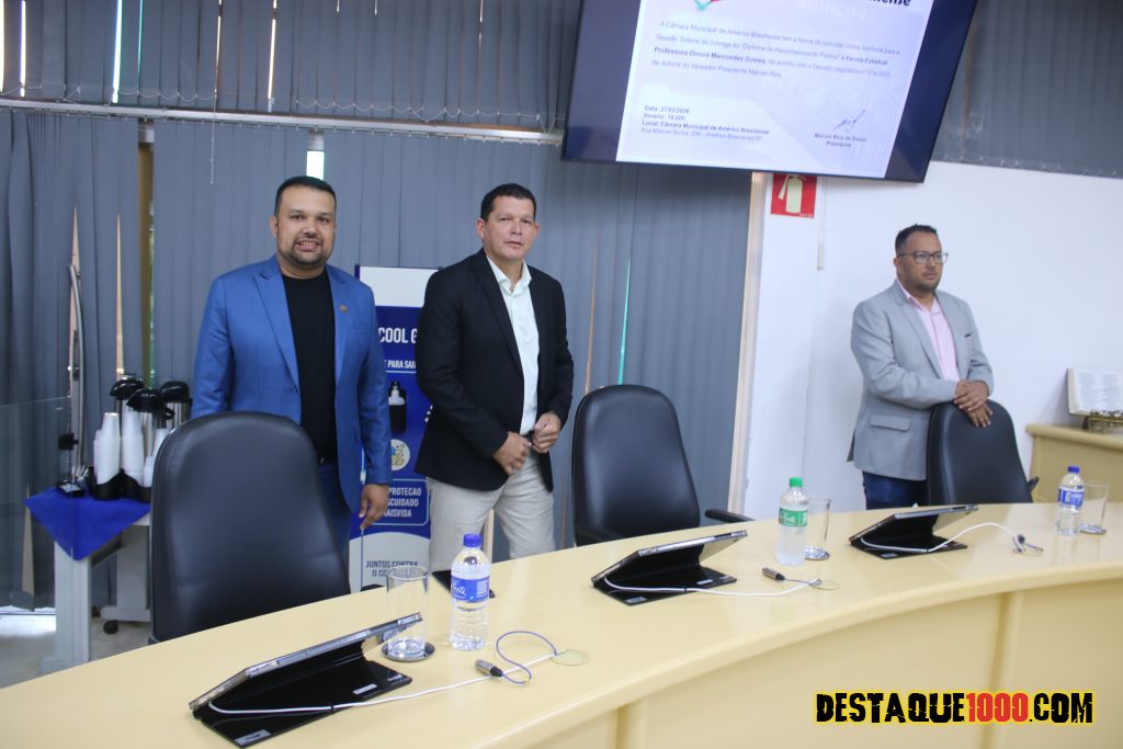 De autoria do vereador Maicon Rios (presidente da câmara), escola Dinorá Marcondes Gomes, recebe o Diploma de Reconhecimento Público em Américo Brasiliense.