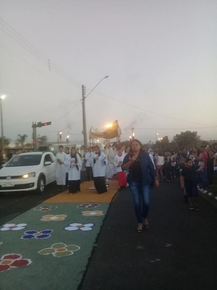 A comunidade católica do município de Américo Brasiliense (SP) celebrou no final da tarde de hoje (20) e inicio de noite, as festividades comemorativas ao Dia de Corpus Christi. O evento contou com o tradicional enfeite nas ruas que percorreu uma grande extensão iniciada na Igreja Nossa Senhora Aparecida, região central, até a paróquia no Bairro São Judas Tadeu.