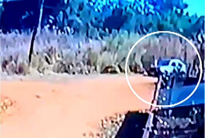 O flagrante é da última quinta-feira (19). Nas imagens é possível ver que que uma pessoa desce de um carro na estrada de terra e se aproxima do capim.
