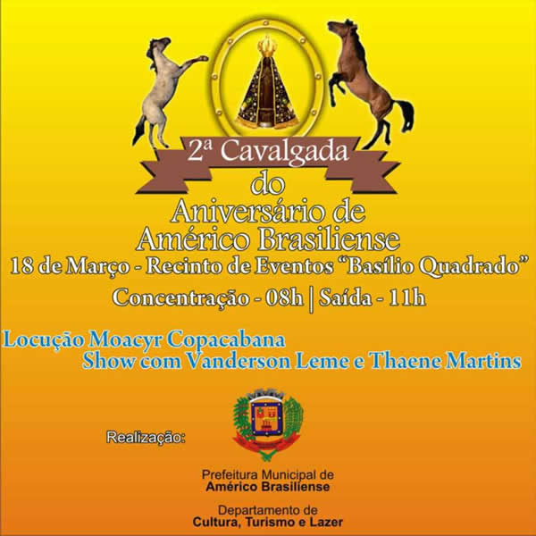 O município de Américo Brasiliense comemora 53 anos e diversas atividades estão sendo programadas para esse mês. Dia 18 tem cavalgada.