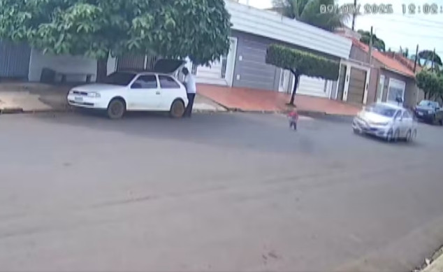 As imagens mostram a criança que estava com o bisavô, que mexia no porta-malas de um carro estacionado na Rua Dário de Oliveira e Silva, no bairro Vila Cristal. O menino sai correndo em direção à rua e é atingido pela lateral de um veículo que passava pelo local.
