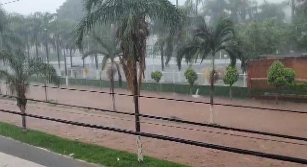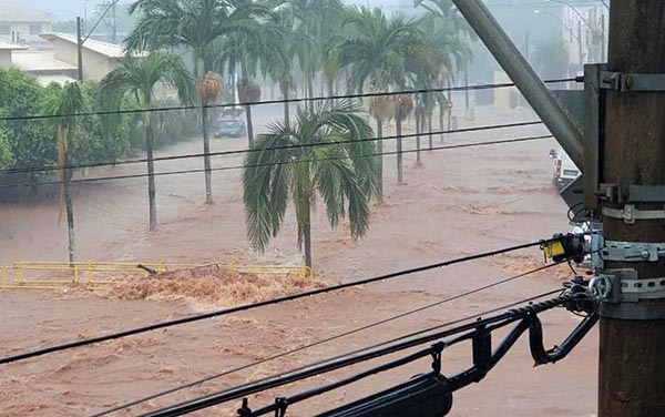 Chuva alaga ruas e avenidas de Guariba (SP) — Foto: Reprodução/EPTV
