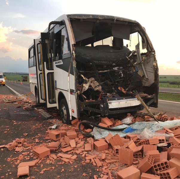 Micro-ônibus transportava pacientes do SUS que retornavam de Piracicaba para Pirassununga e bateu em um caminhão carregado de tijolos.