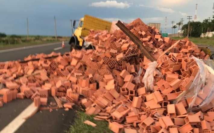 Tijolos foram espalhados na rodovia (Claudinho Coradini/JP)