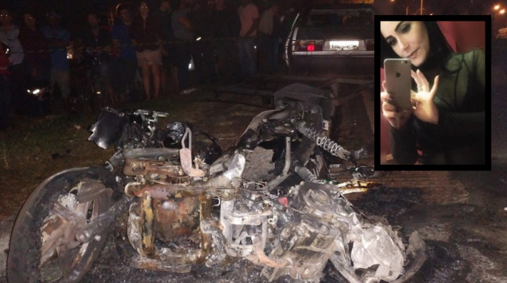 Condutora da motocicleta, de 39 anos, morreu no local (Foto: Marcelo Bonholi)