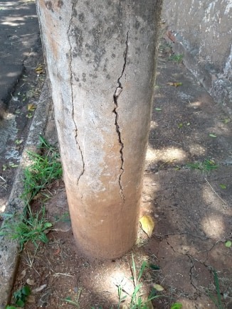 Um Poste de iluminação pública localizado na travessa São Benedito, trecho que liga o Bairro Jardim Maria Luiza ao Centro do município de Américo Brasiliense (SP), está com rachaduras de grandes proporções, gerando risco para os pedestres e motoristas que passam pelo local.