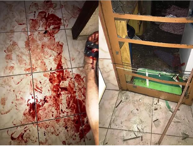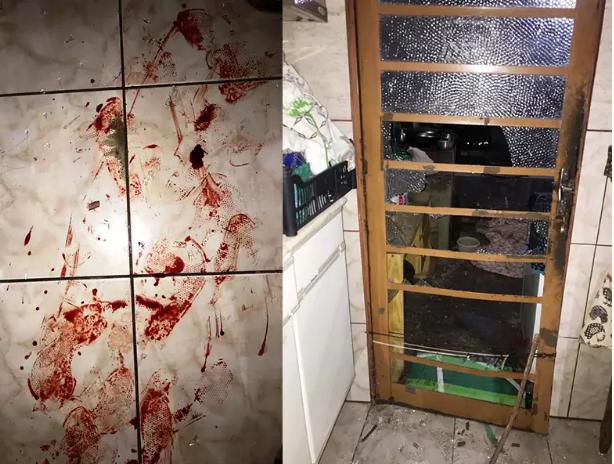 O agressor começou a dar chutes na porta de vidro da cozinha e, ao quebra-la, vários estilhaços vieram a causar ferimentos na parte inferior das pernas da agredida.