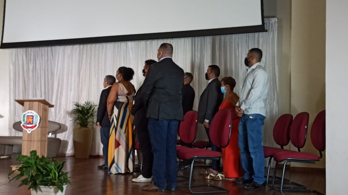 Representantes do legislativo, autoridades municipais e diretores participaram de uma gravação em homenagem ao aniversário de Américo. Município faz 57 anos de existência