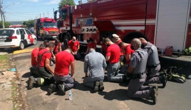 Bombeiros e PMs elevam preces por crianças vítimas de incêndio