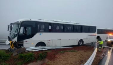 Nenhum dos 44 ocupantes do veículo ficou ferido. Equipes da concessionária e da Polícia Rodoviária estiveram no local e havia bastante neblina e chuva no momento do acidente.
