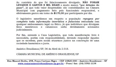 De acordo com os vereadores de Américo, a nota de esclarecimento tem como objetivo transparecer uma viagem feita para o 62º Congresso Estadual dos municípios.
