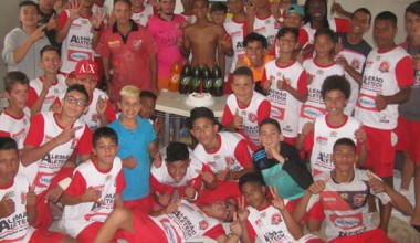 Atletas da categoria Sub-15 do time de futebol Destaque1000 vive momentos de felicidade ao conquistar o campeonato regional da Associação Atlética.