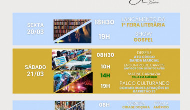 Entre os dias 20, 21 e 22 de de março, a celebração promete movimentar a cidade com atividades que valorizam a cultura, o esporte e a participação da comunidade, marcando essa data tão importante para a história do município.